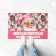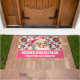 Pink Retro Santa Claus Christmas Floral Plaid Doormat