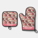 Pink Retro Santa Claus Christmas Floral Plaid Oven Mitt & Pot Holder Set