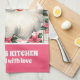 Pink Retro Santa Claus Christmas Floral Plaid kitchen towel