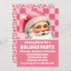 Pink Retro Santa Claus Pink Tartan Plaid Christmas Invitation