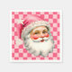 Pink Retro Santa Claus Pink Tartan Plaid Christmas Napkin