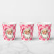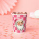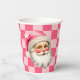 Pink Retro Santa Claus Pink Tartan Plaid Christmas Paper Cups