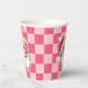 Pink Retro Santa Claus Pink Tartan Plaid Christmas paper cups