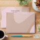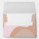 Our wedding invitation envelope features modern black calligraphy combined with an elegant retro wave design in pink, brown and terracotta. Add your address for easy mailing to all your guests.