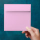 This contemporary envelope design in pink adds an elegant touch to your wedding invitations. You can customise either the envelope or text colour. With the dark colours, you can use a white gel pen if you want to hand write your addresses. You can also use a light coloured label.