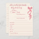 Pink vintage ribbon watercolor casual font baby predictions and advice card. Baby boy baby shower games