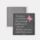 Pink Ribbon Bible Verse Magnet--beautiful black chalkboard background design with the uplifting bible verse Isaiah 40:31 which reads, "But they that wait upon the LORD shall renew their strength; they shall mount up with wings as eagles; they shall run, and not be weary; and they shall walk, and not faint" --with a pink ribbon butterfly accent design. This inspirational magnet makes a wonderful gift for someone fighting breast cancer and breast cancer survivors. Uplifting and encouraging.