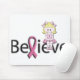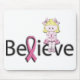 Mousemat with the words "Believe" and adorable little "Pink Ribbon Bonnie" sitting on top!!