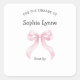 Pink Ribbon Bow girl baby shower bookplate Square Sticker