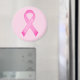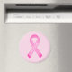 Pink ribbon breast cancer awareness custom round fridge magnet. Personalised logo design. Add your own support text, warrior quote or survivor name.