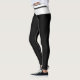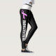 Horizontal white stripes hug the top edge of these leggings which have a slanted single pink ribbon on the side of the right leg below which a template for your personal awareness message appears.