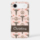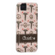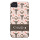 A pink and brown peace symbol, heart and caduceus design with the initials RN on cute and pretty nurse iPhone 4 / 4s Barely There Case-Mate cases and covers. Personalise the case with your name on the PRINTED ribbon look design. This makes a great gift for a graduating nursing student, preceptor or practicing registered nurse. Designed by Chrissy H. Studios, LLC.