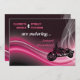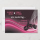 Pink road biker wedding invitation, featuring a motorcycle on an abstract gradient pink, white, plum background and a white mesh. Some elements courtesy of Clipartandfonts.com.