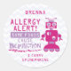 Allergy Alert: Some foods cause Malfunction. Personalise with name or other information. Pink, purple and magenta robot design on lavender chevron background. Personalise with name or other text. Great for use at school or daycare to help alert others of a food allergy. Customise with name and/or with text saying epinephrine device is inside in case of emergency. Designs by Lil Allergy Advocates www.lilallergyadvocates.com Designs by Lil Allergy Advocates www.lilallergyadvocates.com