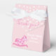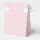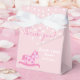 A cute pink rocking horse baby shower party favour box. Thank you elegant script typography. Personalise the name and the date. Pink colours for a baby girl babyshower party celebration. Great party supplies for a new baby. Rocking horse themed favour box with white stars on a pink background.