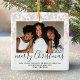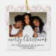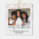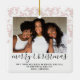 Pink Rococo Merry Christmas Script Photo Ceramic Ornament