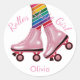 Pink Roller Skate Girl Stickers with diy text. Decorate your envelopes, treat bags, etc... with this cute adorable roller skate design Sticker. 100% Customisable. The design will be printed EXACTLY like you see it on the screen and on the product...so please make sure when you do your changes on the resizing of any of the graphics or text that it fits in the areas correctly and that your spelling and wording is how you like it to be in size, colour and font.