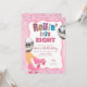 Pink Roller Skate Glitter Sequin Birthday Invitation, Rollin Into Eight Birthday Invite, Editable Discoball Kids Birthday Party