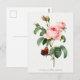 Pink Rose and Butterfly Botanical Illustration Postcard