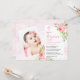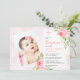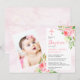 Pink Rose Blooms Girl Baby Photo Baptism Invitation