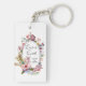 Pink Rose Blush Floral Frame Wedding Keychain