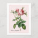 A fine art postcard, Rosa Centifolia - A botanical illustration of pink roses by Pierre-Joseph Redoute (c. 1817-1824).