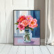 Pink Rose Bouquet Glass Vase Romantic Floral Painting Art Poster Print