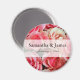 Elegant bouquet of pink roses wedding magnet personalised with your names and date.