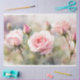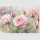 This tissue paper design features beautiful pink rose flowers and buds on a subtle green and blush pink bokeh.