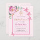 A blush pink background with an arch. Decorated with a pink floral, rose flower, green watercolored eucalyptus greenery and butterflies. Personalise and add a name and details.