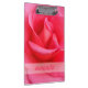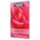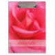 Pink Rose clipboard features a close-up photograph of the delicate petals of a beautiful pink rose along with a horizontal bar to insert custom text. Pure beauty! © Morning 6