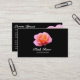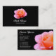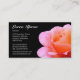 A business card with a pink rose photo motif. Business name etc on the front with other details on the reverse in a variation of the front styling.