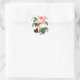 The sticker is made on wonderful paper and had no problem sticking to the bag that I purchased to put it on. I wanted to find a design that would be cute for the bride and groom and this one fit the bill as it has cute "bees" buzzing around and the wedding was taking place in a town called "Bee Cave". The packaging was great and protected the stickers. The website is easy to navigate and there are so many color choices. I had no problem finding a color that the bride was using on everything else selected. The design was adorable and there were many to choose from. You can make the figure as larger or smaller and you can place the photo and writting whereever you want to in the sticker. The printing is fabulous..better than expected.