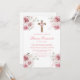 Pink rose floral first communion invitation in spanish for girl.