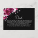An elegant pink floral black wedding details enclosure card to include with your invitation for all of the important extra details your guests may require.