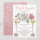 Pink Rose Floral Blooms Bridal Brunch and Bubbly Invitation