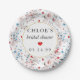Pink Rose Floral Blue Flowers Bridal Shower Paper Plate