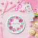 Pink Rose Floral Wreath Paper Plate