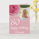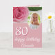 Pink Rose Flower Photo Floral 80th Birthday Card