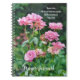 The front of this journal spiral notebook features my original photograph of rose flowers in a garden and blooming in pink tones, styled with a watercolor painterly style. Bible Scripture from Psalm 66:20 is at the top of the image and the words "Prayer Journal" is also on the image.