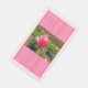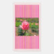 A pink rose found in the rose garden at Cantigny in Wheaton, Illinois is the focal point of this paper guest towel. Whimsical pink stripes form a band at the top and bottom.
