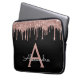 Pink Rose Gold Black Glitter Sparkle Monogram Laptop Sleeve