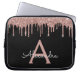 Pink Rose Gold Black Glitter Sparkle Monogram Laptop Sleeve