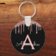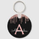 Pink Rose Gold Black Sparkly Glitter Monogram Key Ring