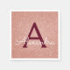 Pink Rose Gold Burgundy Glitter Sparkle Monogram Napkin