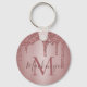 Pink Rose Gold Faux Glitter Drips Monogram Key Ring