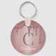 Pink Rose Gold Faux Glitter Drips Monogram Key Ring