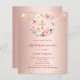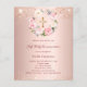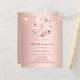 An elegant girly rose gold, blush gradient background, decorated with watercolored pink and white flowers in a wreath, a golden cross and faux glitter. Personalise and add a name and details.