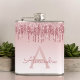 Pink Rose Gold Glitter and Sparkle Monogram Hip Flask