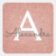 Pink Rose Gold Glitter and Sparkle Monogram Square Sticker